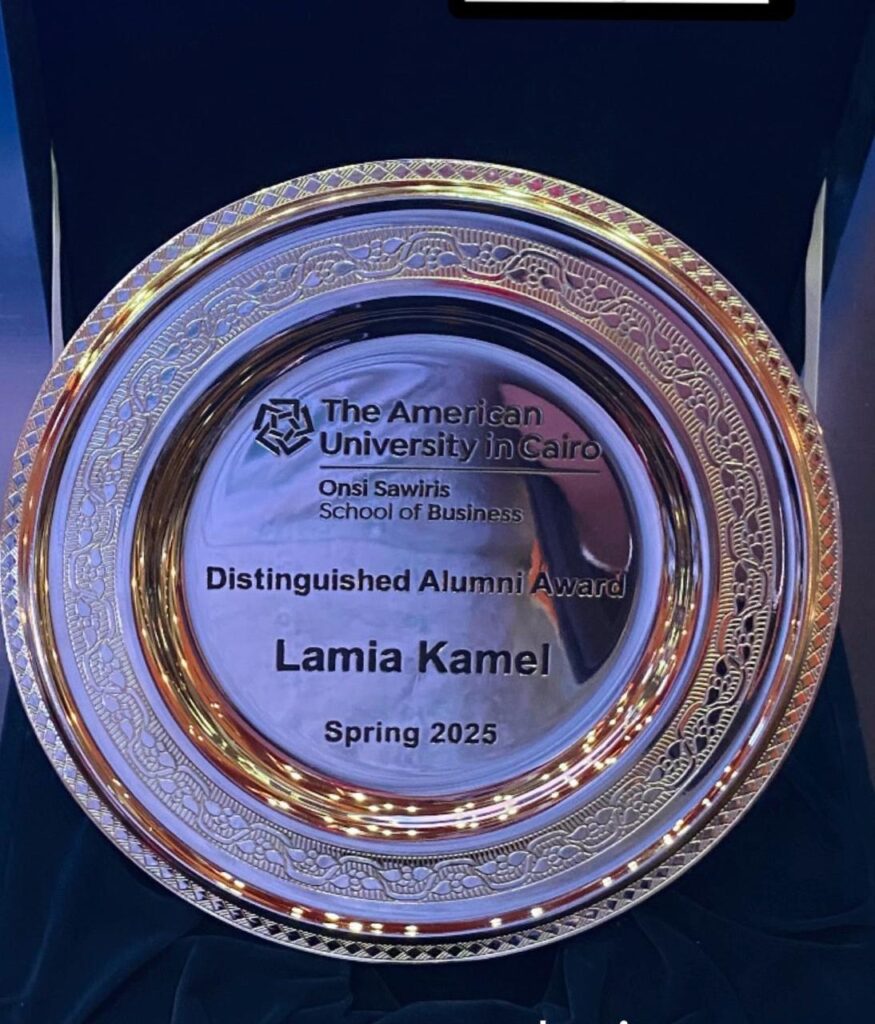 Lamia Kamel, Founder and CEO of CC Plus, Creator of Narrative Summit, and former Assistant Minister of Tourism and Antiquities for Promotion, has been awarded the Distinguished Alumni Award for Spring 2025 by the Onsi Sawiris School of Business at the American University in Cairo (AUC). The award honors graduates who exemplify leadership, impact, and a lasting commitment to driving meaningful change, and was presented to Lamia by Dr. Sherif Kamel, Dean of the Onsi Sawiris School of Business and Chair of the AACSB Board of Directors.