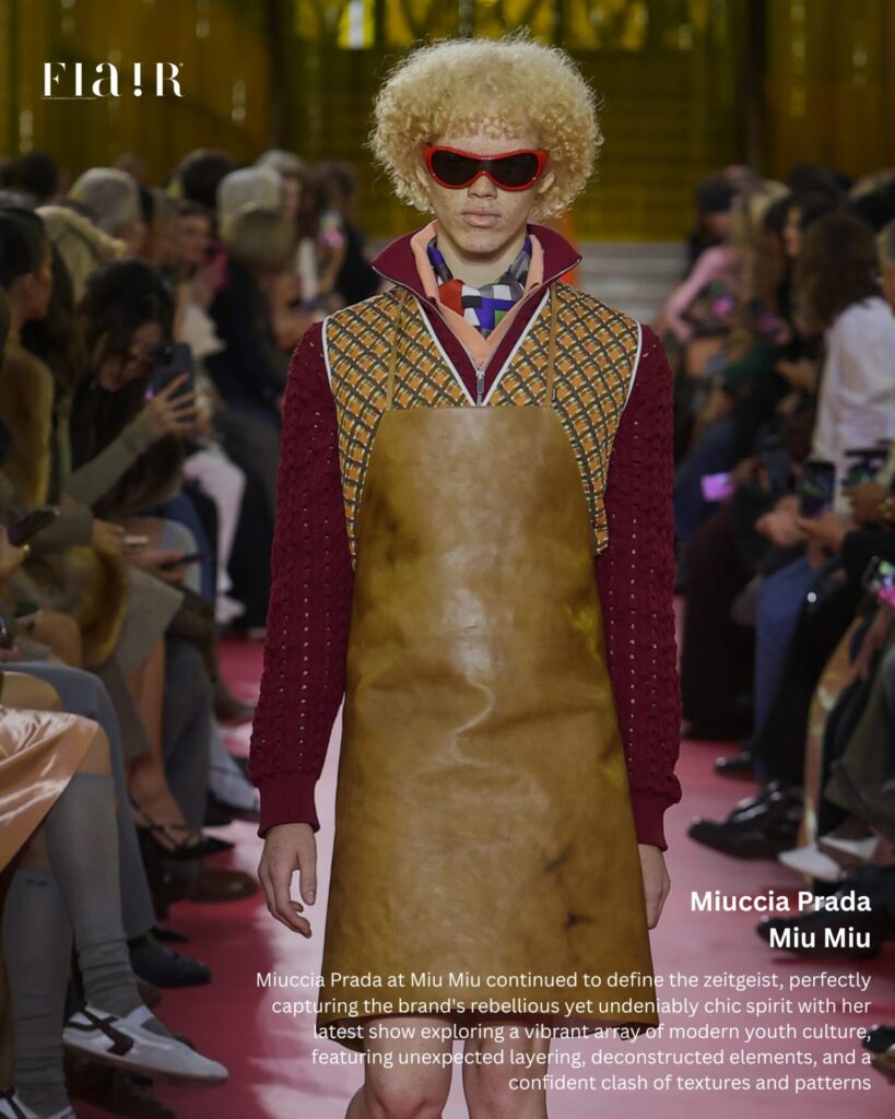 Miuccia Prada at Miu Miu continues to define the zeitgeist, with her latest show exploring a vibrant array of modern youth culture. With unexpected layering, deconstructed elements, and a confident clash of textures and patterns, she perfectly captured the brand’s rebellious yet undeniably chic spirit at this year’s Spring/Summer 2026 runway show.
