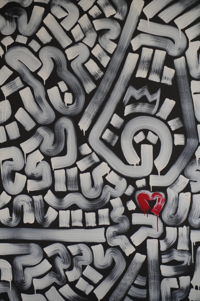 “I rarely know where a painting is going before my paintbrush touches the canvas. As I am maturing, I’ve become more in tune with my visual ideology before I paint.” Kairo takes me through his latest project: a painting featuring the words Kairo, laid out textually next to each other, with a cartoon-like character of a girl super-imposed on it. He explains that as he was painting, a sentence that a girl had once said to him came to his mind, and he immediately felt the need to integrate it into his existing work.