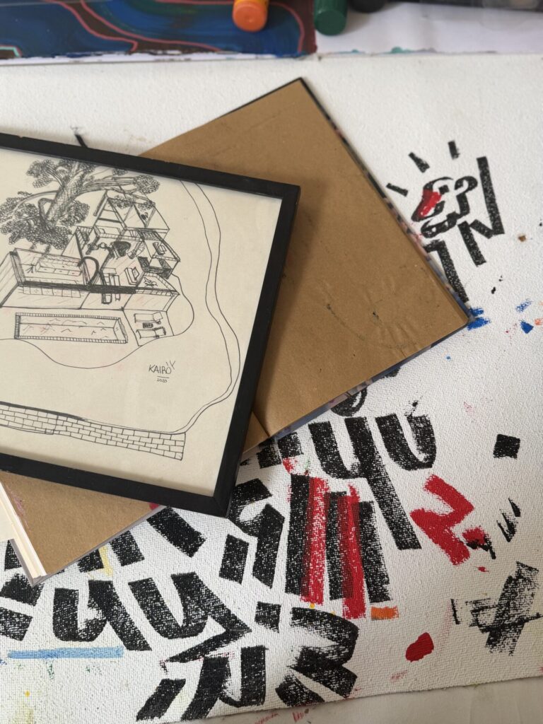 As a young child, Kairo was not really into art. His most vivid memory of an art encounter that moved him and stayed, was the first painting he made in the fifth grade. He was very proud of it, even had it framed with the intent of showing it to his class teacher, but upon sharing it with her, thinking he would receive praise, he was, instead, met only with criticism.